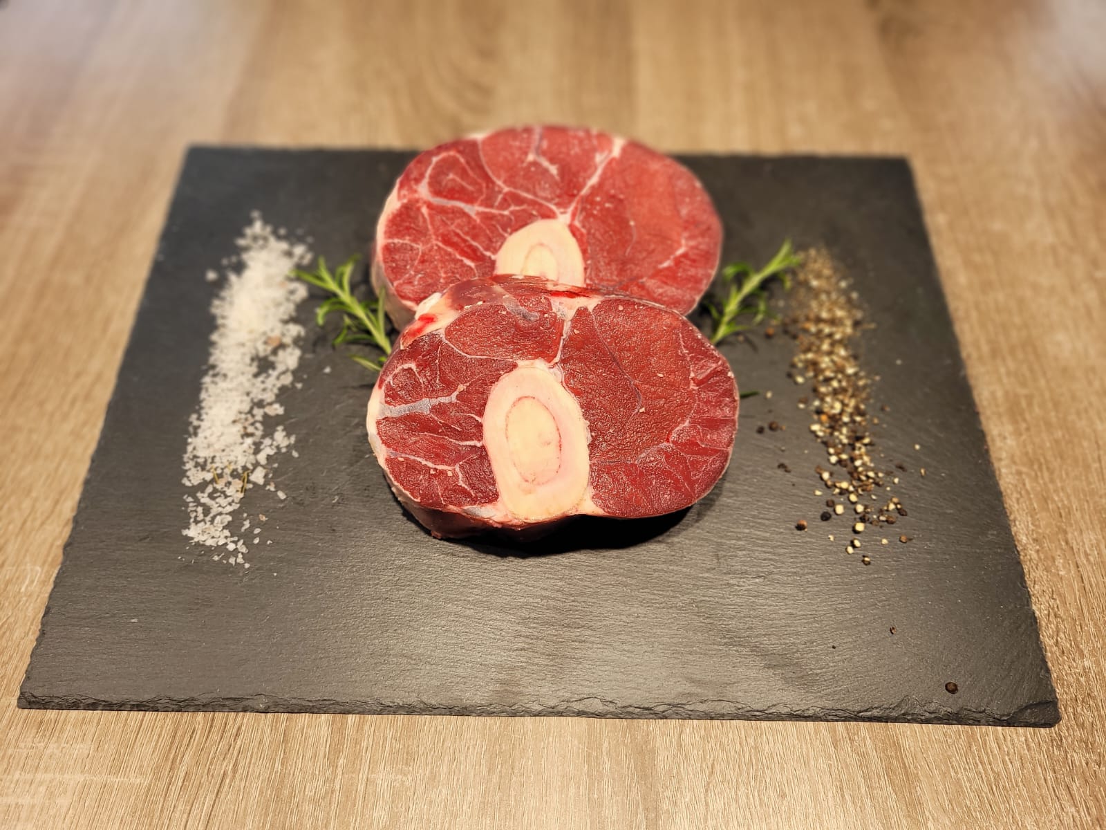 Eignet sich als Suppenfleisch oder zum Schmoren für beispielsweise Ossobuco.